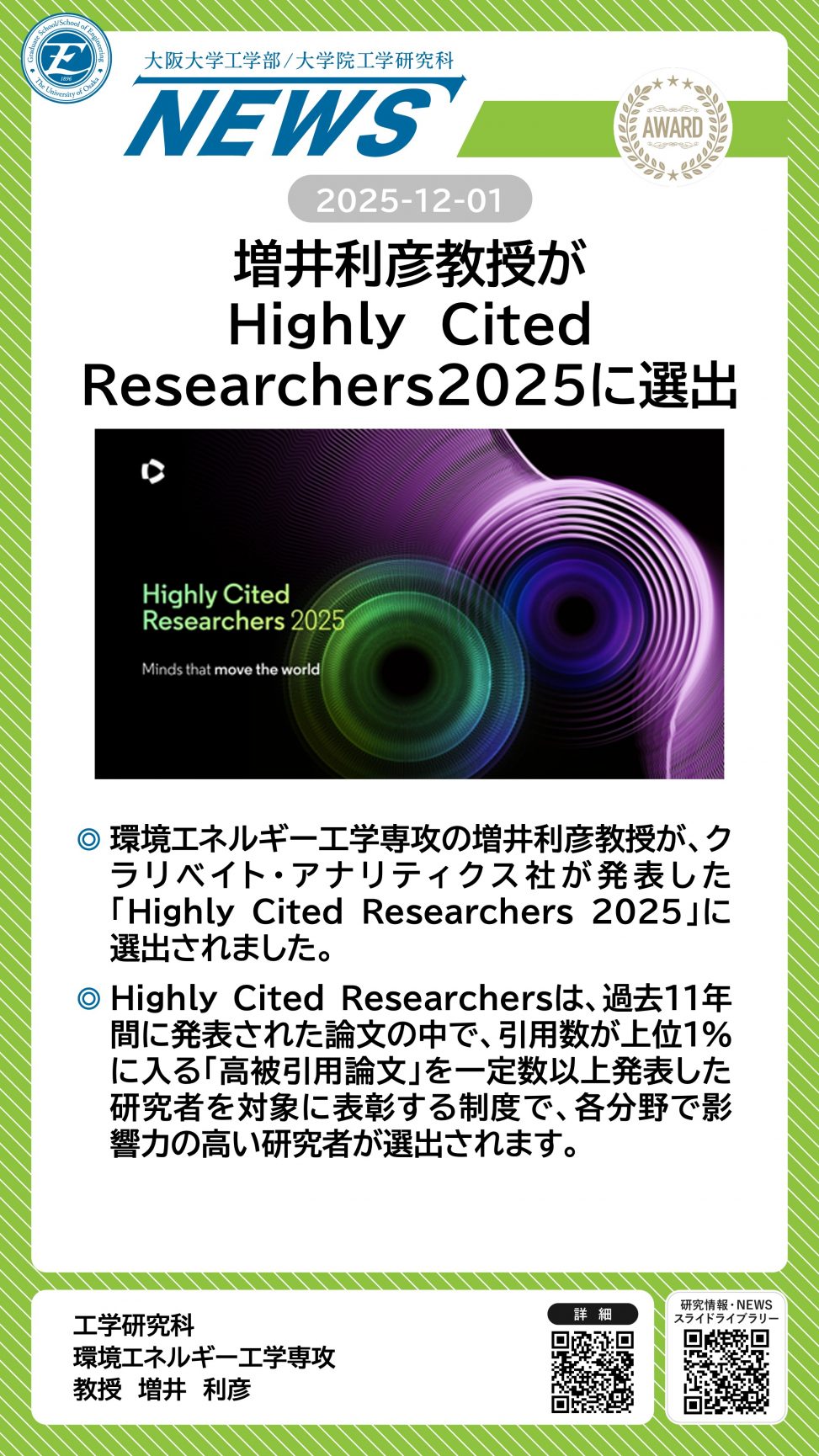 増井利彦教授がHighly Cited Researchers2025に選出されました 詳細ページ https://www.eng.osaka-u.ac.jp/ja/topics/researchresult/27728 2025年12月1日 投稿先 NEWS, 環境・エネルギー工学科, 環境エネルギー工学専攻 ← 過去の投稿へ 次の投稿へ →