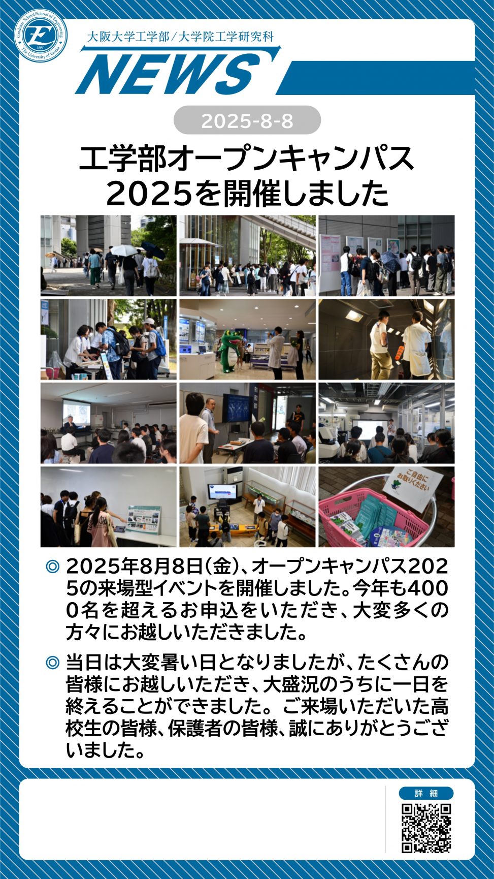 工学部オープンキャンパス2025を開催しました 詳細ページ https://www.eng.osaka-u.ac.jp/ja/topics/news/26335 2025年8月8日 投稿先 NEWS ← 過去の投稿へ 次の投稿へ →