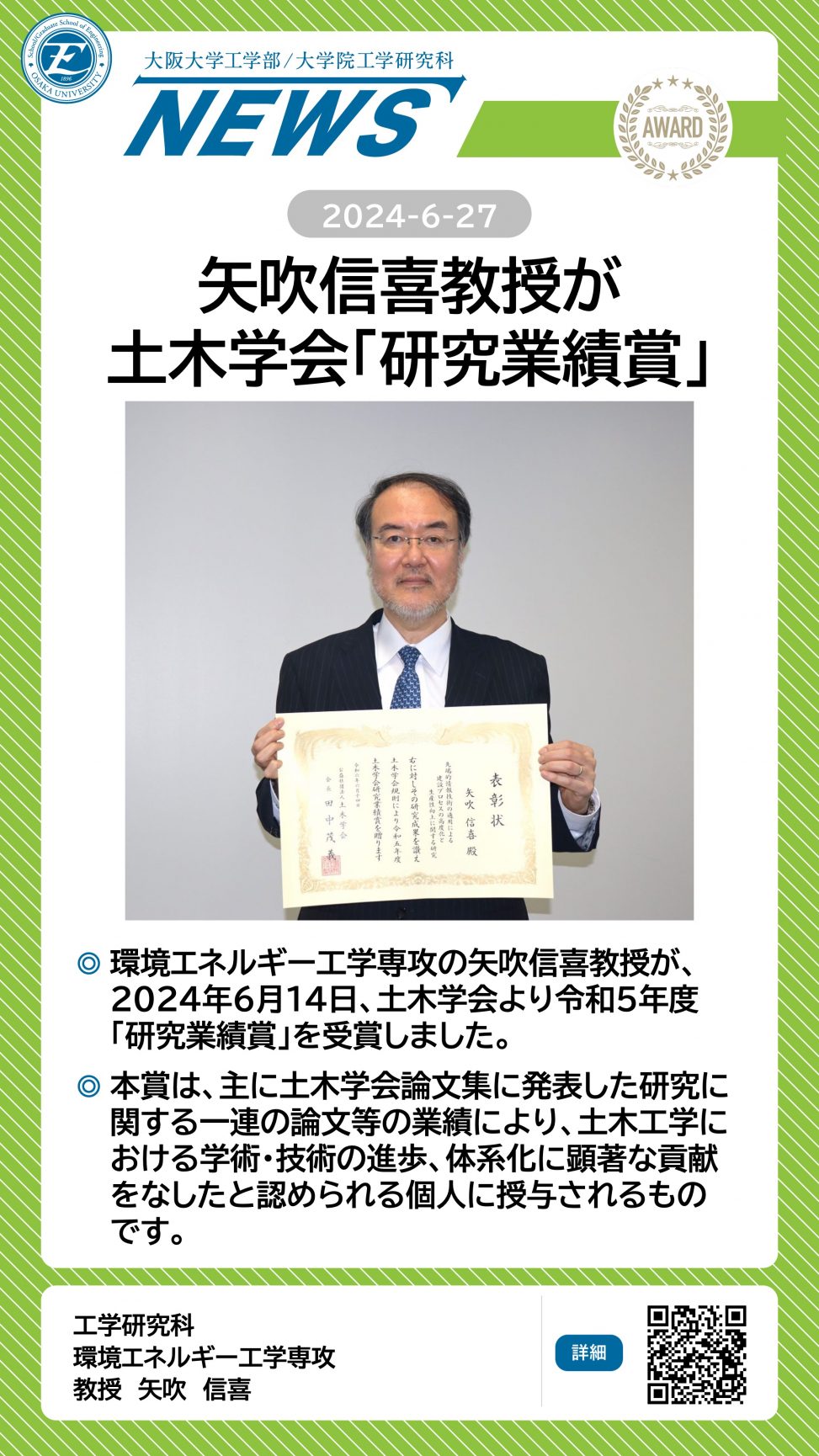 矢吹信喜教授が土木学会「研究業績賞」を受賞 詳細ページ https://www.eng.osaka-u.ac.jp/ja/topics/researchresult/21047 2024年6月27日 投稿先 NEWS, 環境・エネルギー工学科, 環境エネルギー工学専攻 ← 過去の投稿へ 次の投稿へ →